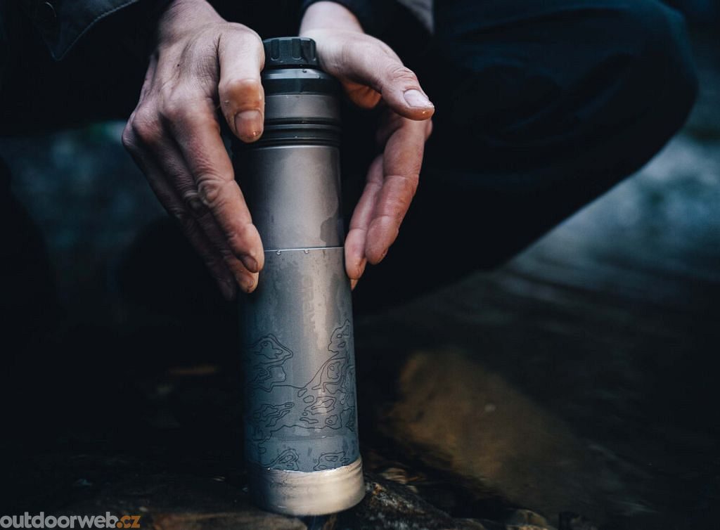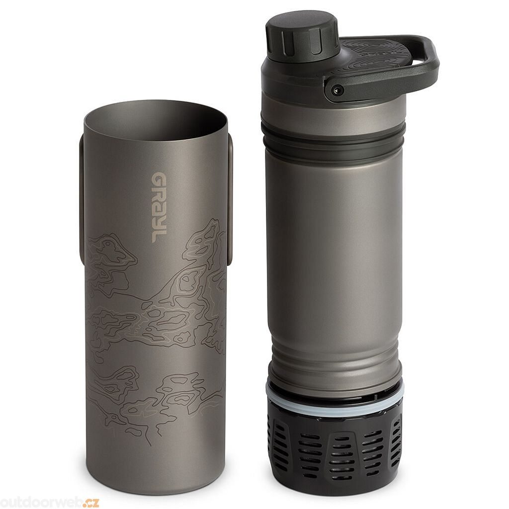 Grayl Ultrapress Titanium is a highly efficient filtration system that will have your drinking water purified of pathogens (viruses, bacteria, protozoa), chemicals, heavy metals and particulates in just 10 seconds. No matter where you are on any of the 7 continents, all you have to do is fill a bottle from a natural or untrusted water source, squeeze it, like a Frenchpress, and you're ready to drink in no time.