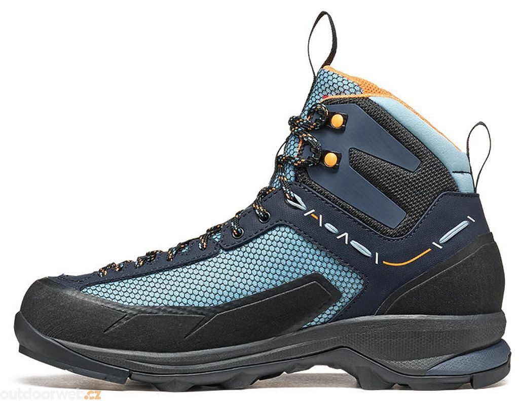 The boot has a more snug fit with more volume in the toe and instep area, ensuring maximum comfort on hikes and ferrata trails. The tough polyester fabric upper with Gore-Tex® Extended Comfort lining and TPU liner offers protection and climate comfort even on warm days.