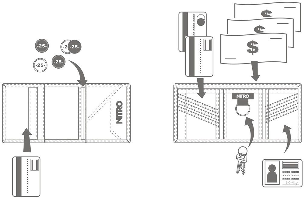 Durable and classic, this three-compartment wallet features a zippered coin pocket, mesh bill pocket, credit card sleeve and key ring to keep your finances under control.