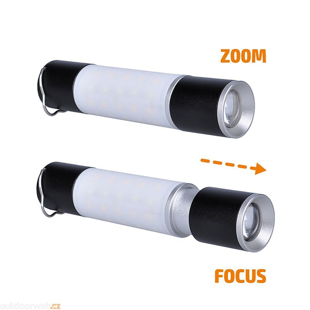 - Powerful LED flashlight with adjustable focus